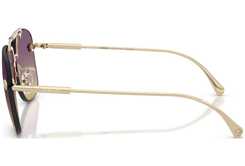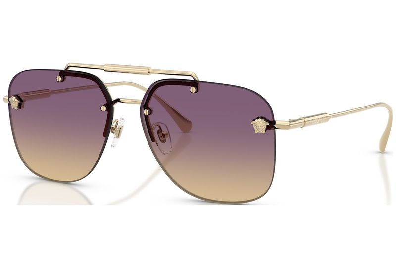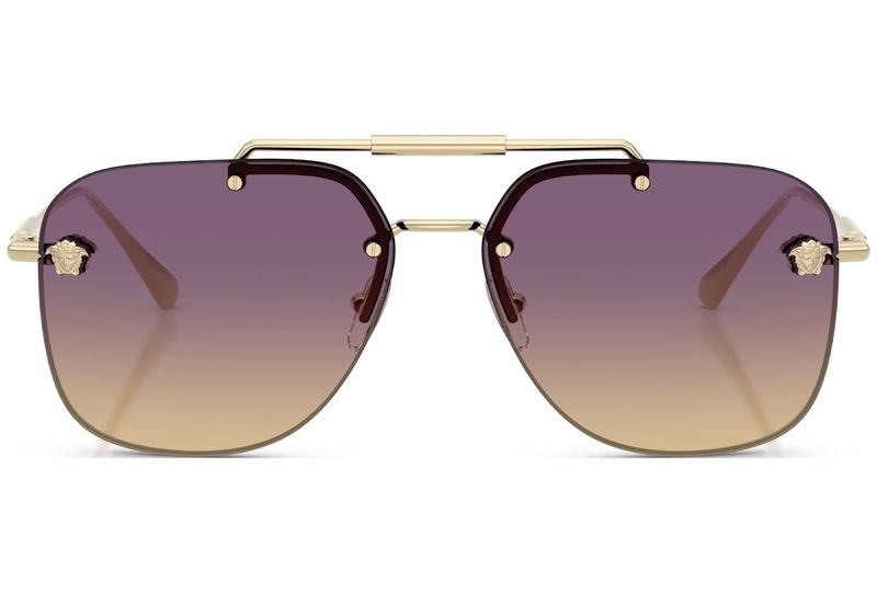 Com lentes sem aro e estrutura tubular de metal, este modelo aviador possui um forte apelo unissex Ângulos irregulares adicionam um toque geometrico, enquanto o iconico motivo da Medusa, marca registrada da Versace, e o logotipo gravado a laser conferem um toque de iconicidade discreta