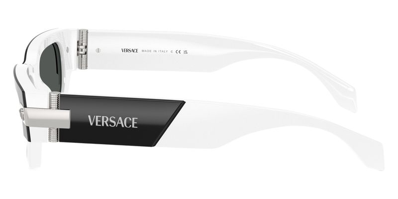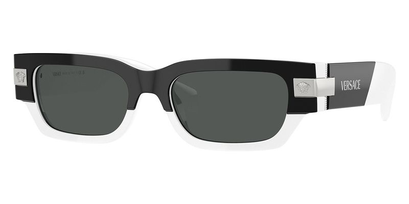 Estes oculos de sol com armacao geometrica estruturada em acetato sao realcados pelo emblema da Medusa nas laterais