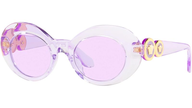Com um estilo mini-eu, os oculos de sol kidswear apresentam armacoes de acetato e hastes largas decoradas com Medusa